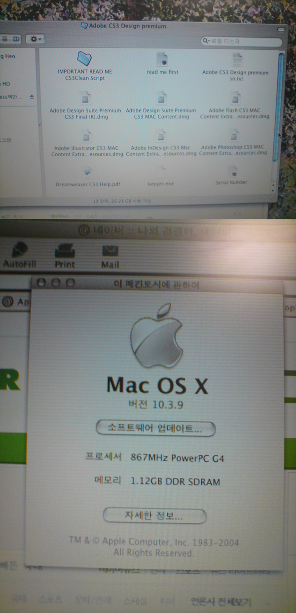 어도비 프리미엄 패키지cs3를 받았는대요 ... 설치가 안되네요.... 제 파워북g4 시스템문제 인가요?
