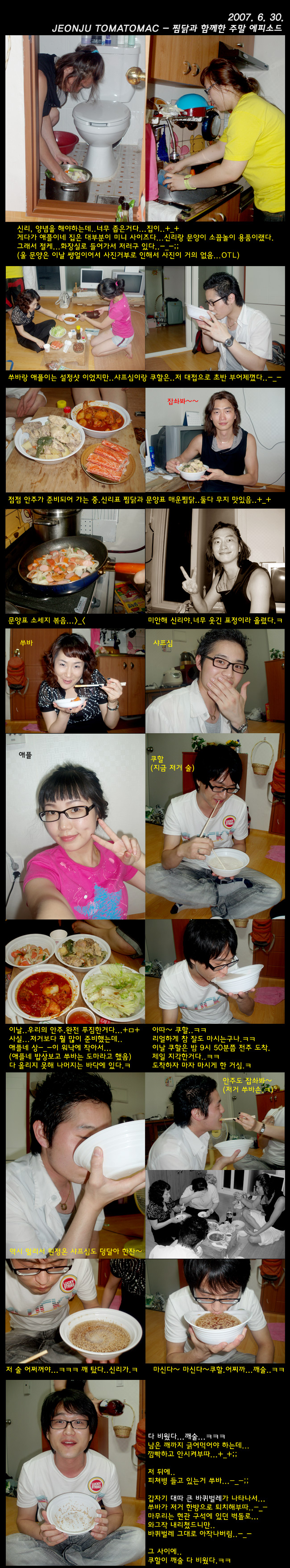 다들 너무 즐거워 보이는 ;ㅂ; 푸하 아 안주 보니까 배고파졌어요... 닭도리탕 먹고 싶어 지네... 데굴... () 다들 멋쟁이!!!