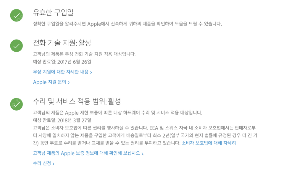보증기간 및 애플케어: 1.8년 3월 27일