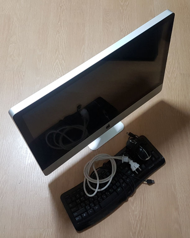 구성품 아이맥본체 + 정품연결케이블 + dvd cd-rw + 일반 마이크로소프트키보드,마우스